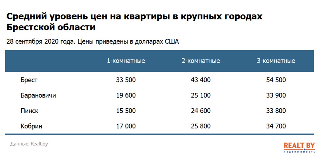 Мониторинг цен предложения квартир в Бресте и городах Брестской области за 21−28 сентября 2020 года