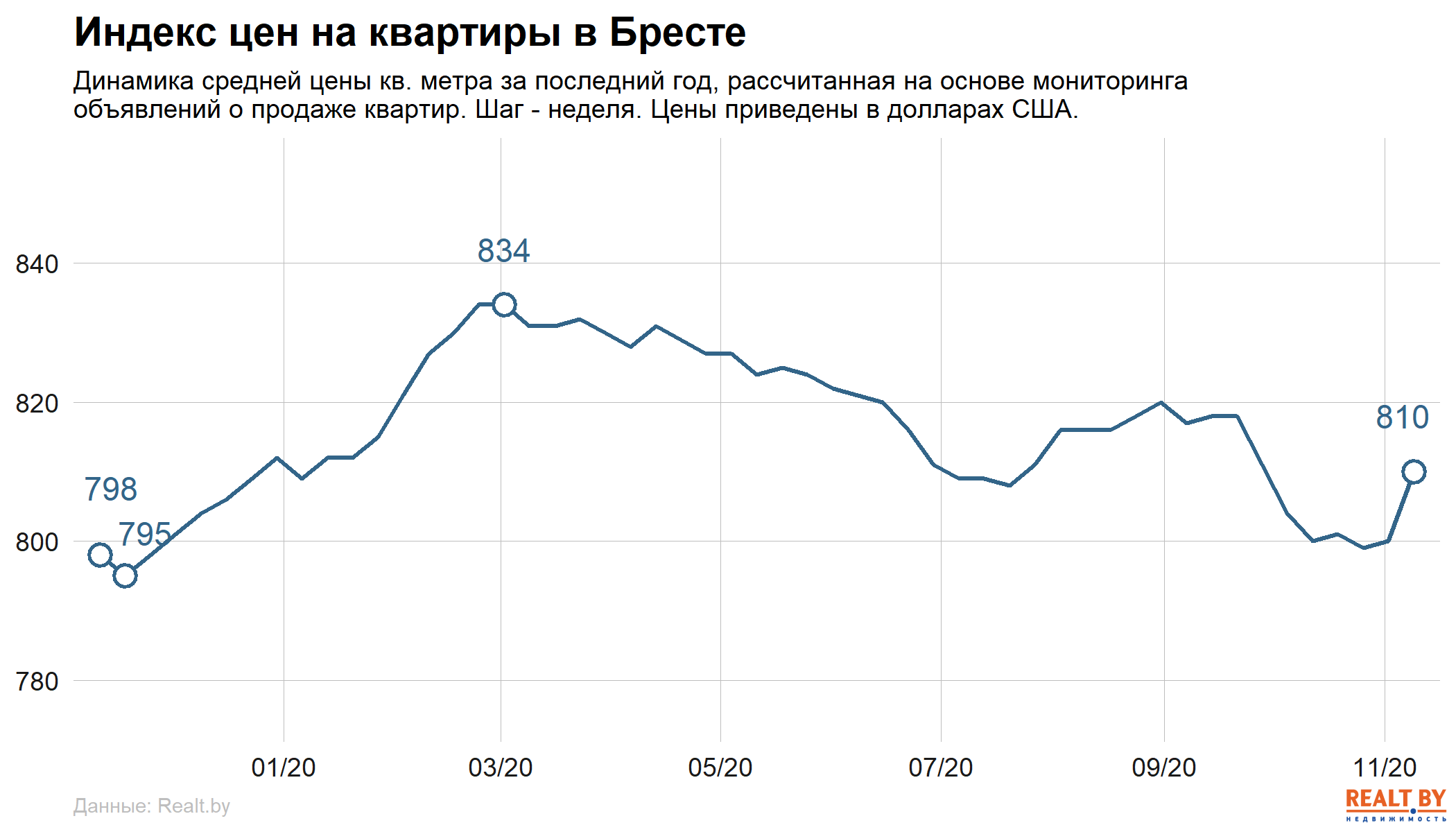 Мониторинг цен предложения квартир в Бресте и городах Брестской области за 2−9 ноября 2020 года