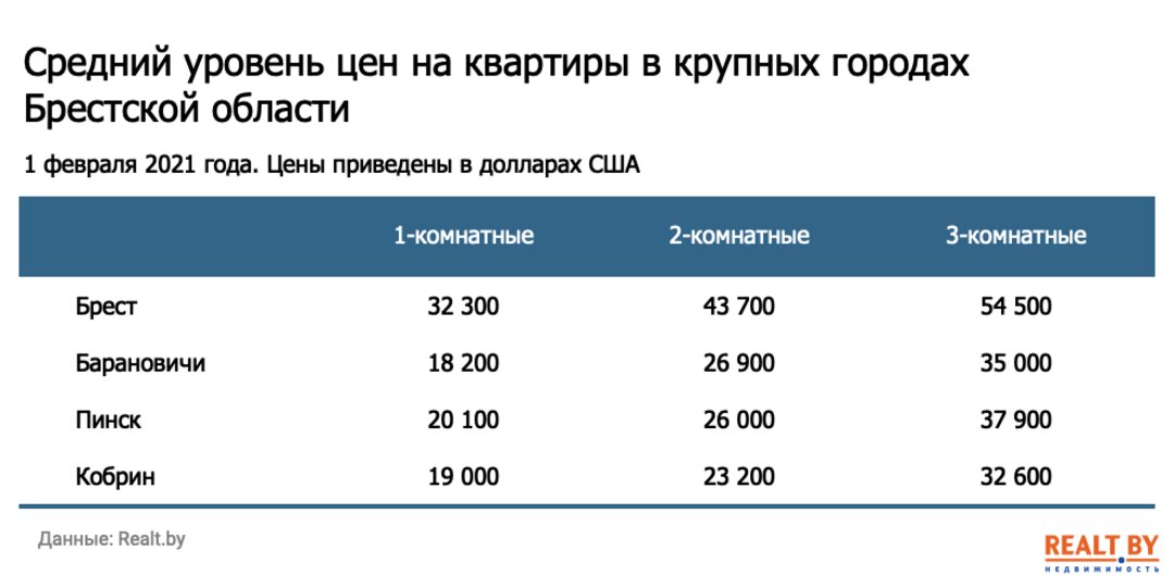 Мониторинг цен предложения квартир в Бресте и городах Брестской области за 25 января — 1 февраля 2021 года