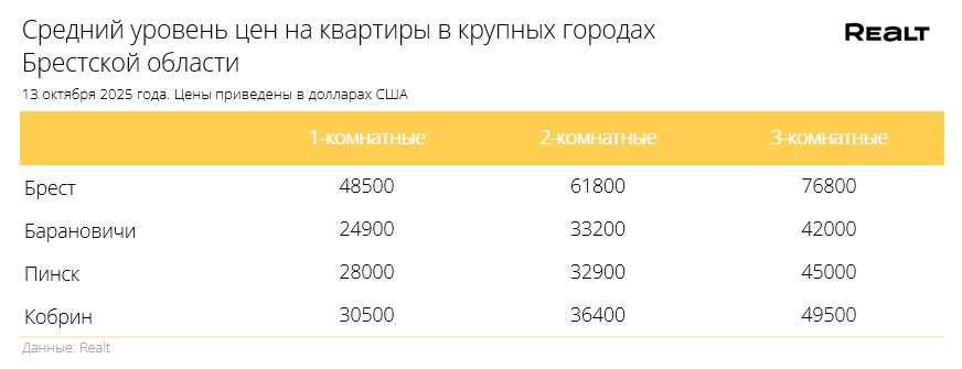 Для сравнения приведем средние цены на квартиры в других городах Беларуси: