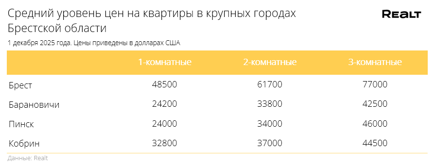 Квадрат для однушек пошел вниз. Что произошло со стоимостью квартир в Бресте и области за 24 ноября — 1 декабря 2025 года