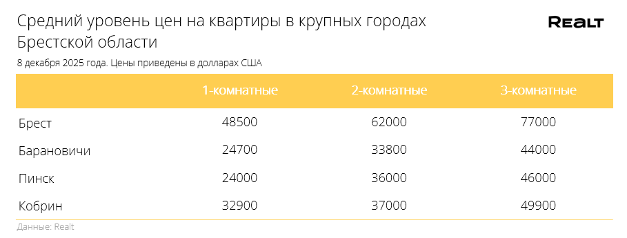Стоимость на однушки продолжает расти. Что произошло со стоимостью квартир в Бресте и области за 1−8 декабря 2025 года