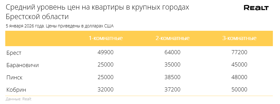 Начало нового года, а однушки продолжают дорожать. Что произошло со стоимостью квартир в Бресте и области за 29 декабря — 5 января 2026 года