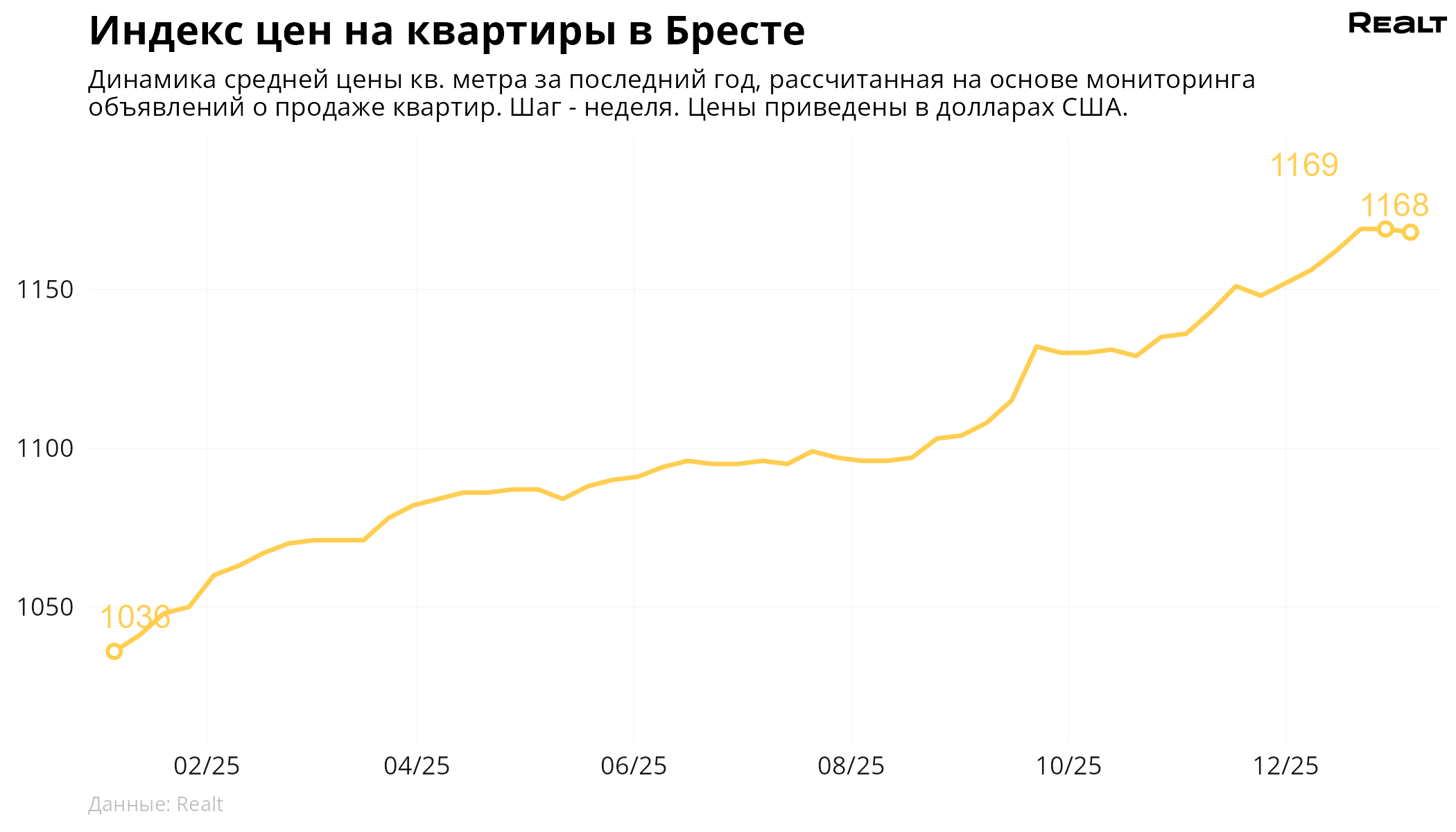 вторичный рынок (+ готовое жилье от застройщиков) — 2154 $/м2 (0.0% за неделю).