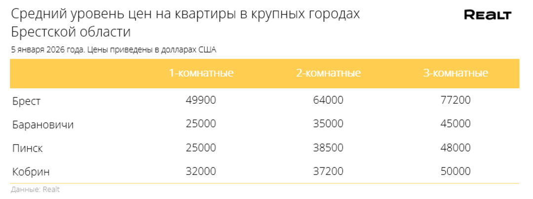 Начало нового года, а однушки продолжают дорожать. Что произошло со стоимостью квартир в Бресте и области за 29 декабря — 5 января 2026 года