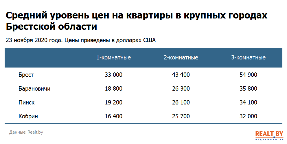 Мониторинг цен предложения квартир в Бресте и городах Брестской области за 16−23 ноября 2020 года
