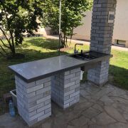 Коттедж с размещением до 23 чел, имеет на 1 этаже- кухня, столовая ,комната с 2-х спальным диваном, банкетный зал 36 м2 до 22 человек. На втором этаже-4 спальни с 2-х спальными кроватями и один 2-х спальный диван. На третьем этаже-8 спальных мест,На первом этаже есть веранда со столом и выходом во двор,она присоединена к бане,вмещает 4-8 человек одновременно,в бане свой туалет,душ,и комната отдыха.На улице беседка на 16 чел, мангал с печью для казана,шампура 15 шт и казан ,рабочий стол с мойкой.