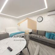 В квартире есть вся необходимая мебель и техника. Комната совмещенная с кухней: кухонный гарнитур, холодильник, микроволновая печь, варочная поверхность, чайник, посуда и приборы. Диван и телевизор, двуспальная кровать. В коридоре шкаф-купе. Совмещенный санузел, есть стиральная машина. Застекленный балкон.