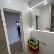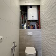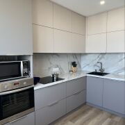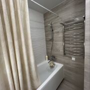 Современный дизайнерский ремонт, качественные материалы. Квартира частично укомплектована мебелью: два спальных места с ортопедическими матрасами Вегас (в спальне и детской). В детской комнате также есть шкаф для книг, стол и стул компьютерный. Кухня укомплектована посудомоечной машиной, духовым шкафом, варочной панелью, холодильником, вытяжкой, СВЧ-печью, посудой, кондиционером. В ванной комнате есть стиральная машина. Также в квартире имеется телевизор, бойлер на 80л, система протечки воды.