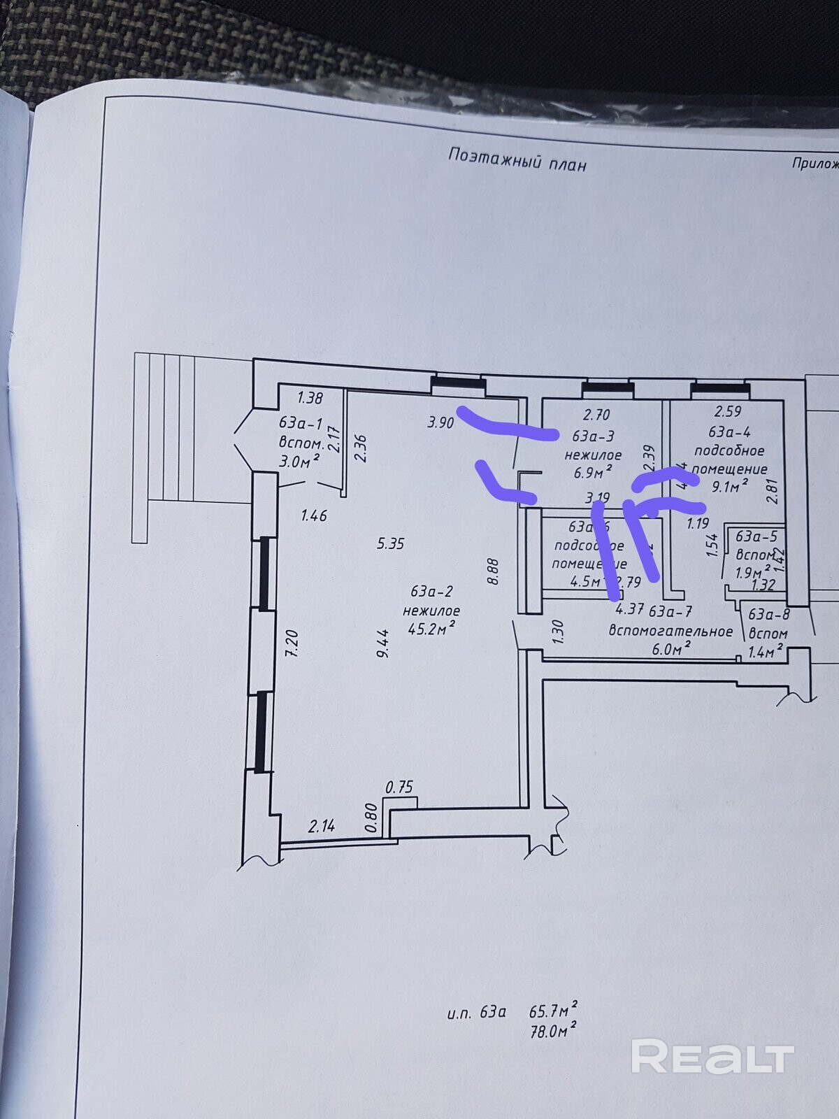 Помещение 78 кв, 2 входа ( архитекторно предусмотрена площадка для погрузки и разгрузки товара со двора дама ) отдельная канализация, вентиляция ( труба вентиляционная 160 диаметр выведена выше крыши дома) электрический силовой кабель 30 Квт, витражные окна, высота потолка более 3 метров