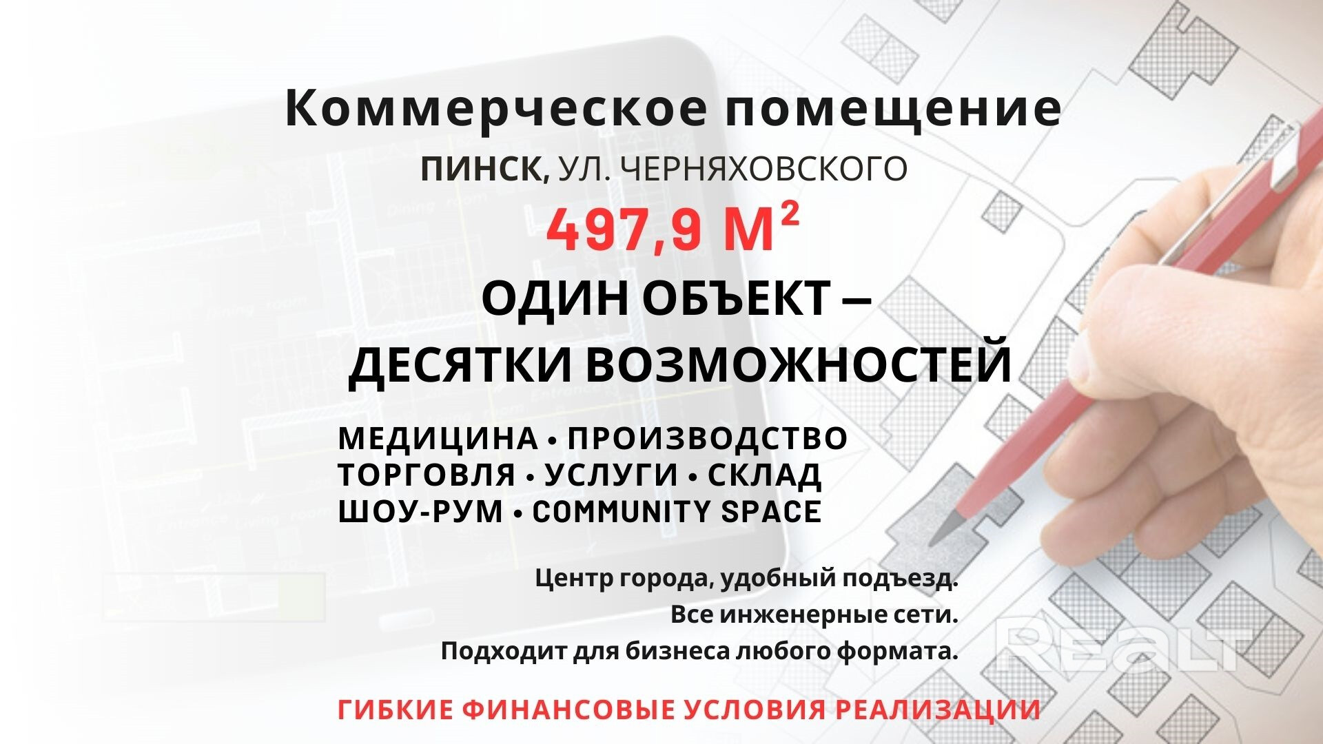 Коммерческое помещение 497,9 м² в центре Пинска — под любой бизнес!