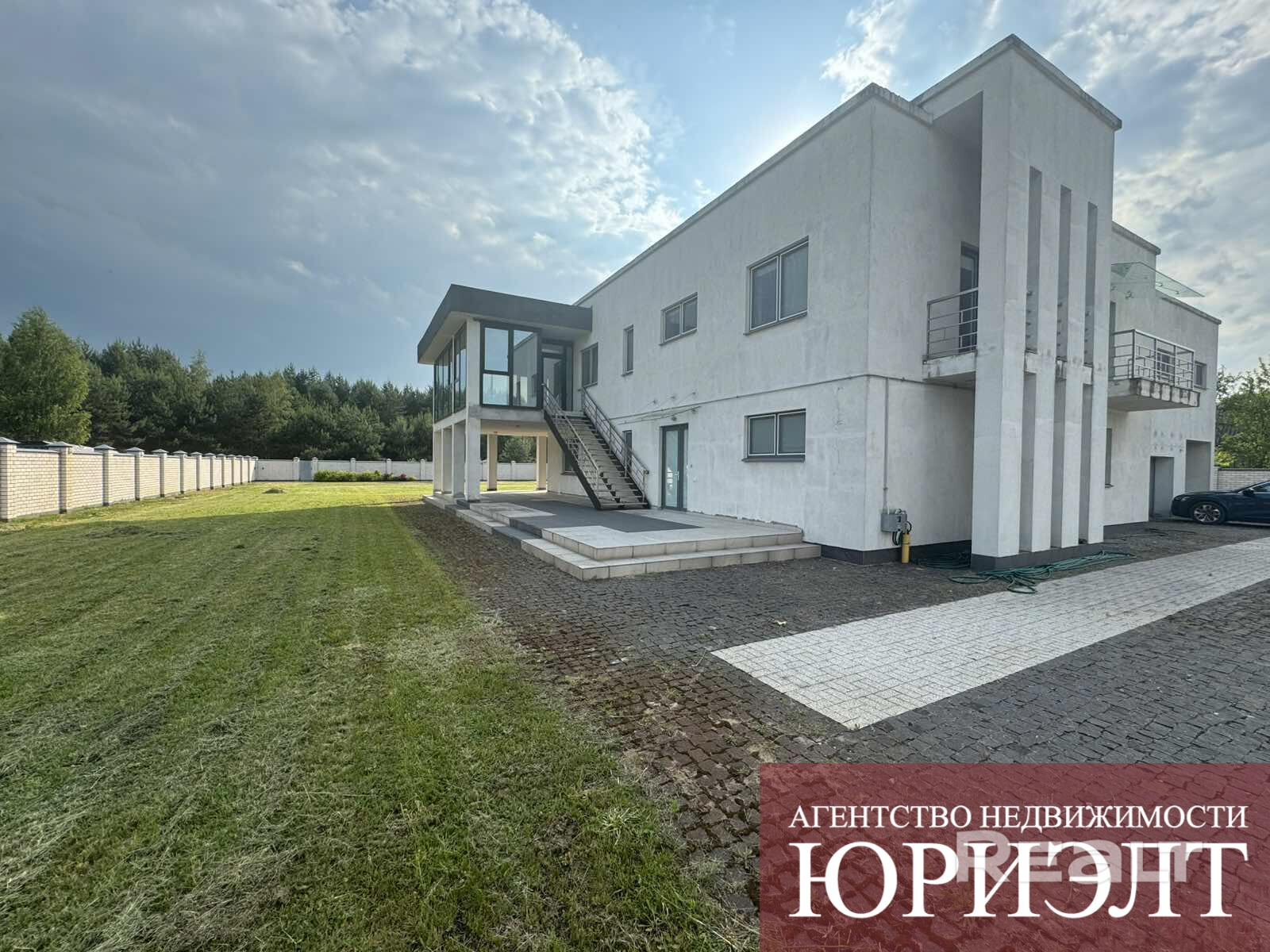 VIP Коттедж для ценителей футуристического направления в архитектуре расположен в 20 км от черты г. Бреста, в живописном районе, вблизи лесного массива и речного залива. Этот современный жилой дом 2013 года постройк спроектирован и построен с помощью нестандартных дизайнерских приемов. Дом 2- этажа, общей площадью 519 м2 и жилой 386,2/227/22,4 м2 . Материал стен - блок, кирпич, кровля плоская - гидроизол, окна - 2-х камерные стеклопакеты , во всем доме система "теплый пол". В следствие оригинальной геометрии всего здания удалось получить максимально интересную и просторную планировку дома. Функционально размещены 4 спальни, кабинет, спортивный зал, застеклённая терраса 120 м2 с действующим камином, столовая 34,3 м2, встроенный гараж на 2 машины 51,1 м2. В коттедже - 3 санузла. Также функционирует система бесперебойного питания. Кондиционер и сигнализация. Для внутренней отделки дома использованы прогрессивные современные материалы премиум класса. Дом заполнен светом , дополнительно созданным за счет больших оконных групп. Три просторных санузла облицованы плиткой современных коллекций..На большом ровном участке правильной формы площадью 0,2474 га установлена система автополива участка. Электроснабжение и газоснабжение -централизованное, водоснабжение скважина, канализация местная. Этот нестандартный современный коттедж идеально подходит для проживания в экологически чистой живописной местности вблизи водоема и лесного массива!