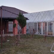 На участке отдельно стоит уютная баня с комнатой отдыха, душевой и санузлом. Имеется беседка, качель, большая теплица, уборная и хозблок. Участок добротно огорожен капитальным забором. Дорожки вымощены тротуарной плиткой. Двое ворот на въезде: в просторный гараж и под навес.