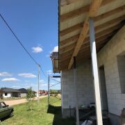 Фунд-арм. лента 40x160см, стены- внеш. 400мм + вн.300мм, армирование 1й и каждый 4й ряд + оконные проемы, Армопояс- 200*150 мм, по всему периметру и внутр. несущим стенам, Дымоход-4 шахты по 150 мм, утеплен минватой10см и оштукатурен, Крыша - подшива открытая, весь лес обработан антисептиком, подшива маслом в 2 слоя, мет.черепица 0,5 мм цинк275РП, снегозадержатели на всех свесах крыши 1 этаж 3м, мансарда 2,6м. Отличное расположение и подъездные пути, на границе лес, в 5ти минутах ходьбы Муховец