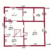 Площадь общая по СНБ – 75.2 м2, общая жилая - 47.7 м2 , жилая – 34.9 м2, кухня – 12.8 м2.