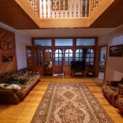 На первом этаже расположены: 3 жилых комнаты, прихожая, кухня, столовая, холл с каминной зоной, раздельный санузел. На втором этаже расположены: 5 жилых комнат, холл, раздельный санузел. На мансардном этаже размещены бильярдная и теннисный стол.Так же в доме имеется цокольный этаж на всю его площадь и подвальный этаж. В доме много естественного света благодаря большим окнам и такому архитектурному решению, как второй свет. Подключены все коммуникации: водопровод, канализация, электроснабжение, газоснабжение, телефонизация.
