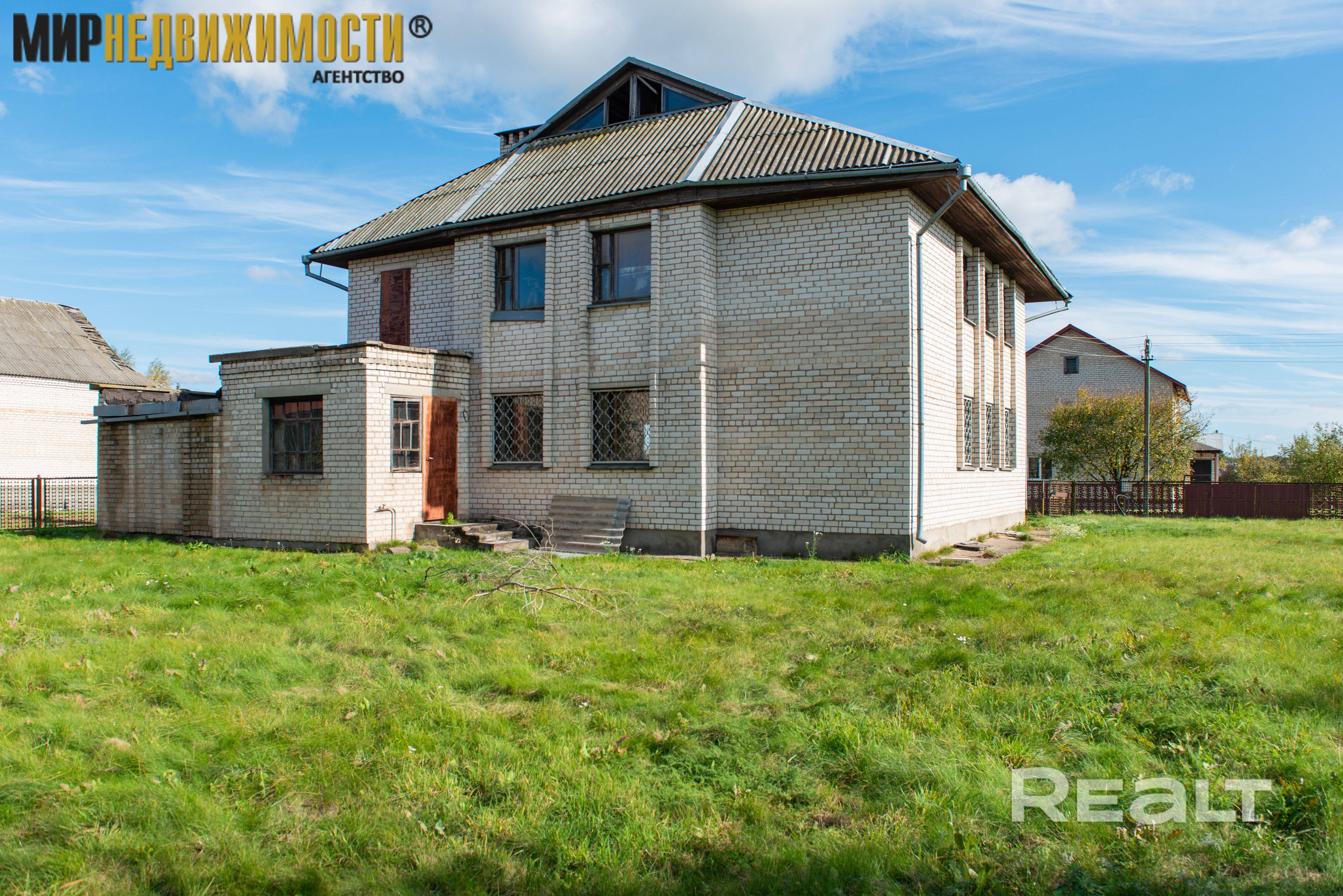 Коттедж расположен в тихом и престижном месте Барановичей. Удобный асфальтированный подъезд. Приветливые соседи. Ухоженный и ровный участок 15 соток в частной собственности, огорожен. Просторный крепкий дом под отделку. Материал стен блоки, обложен кирпичом, крыша шифер. Дом 2 этажа, 6 комнат, 2 балкона, 2 санузла, цокольный этаж по периметру дома. Коммуникации – все центральные. Водопровод, канализация, электричество разведено по дому. Отопление - твердотопливный котел, газ подведен к дому.