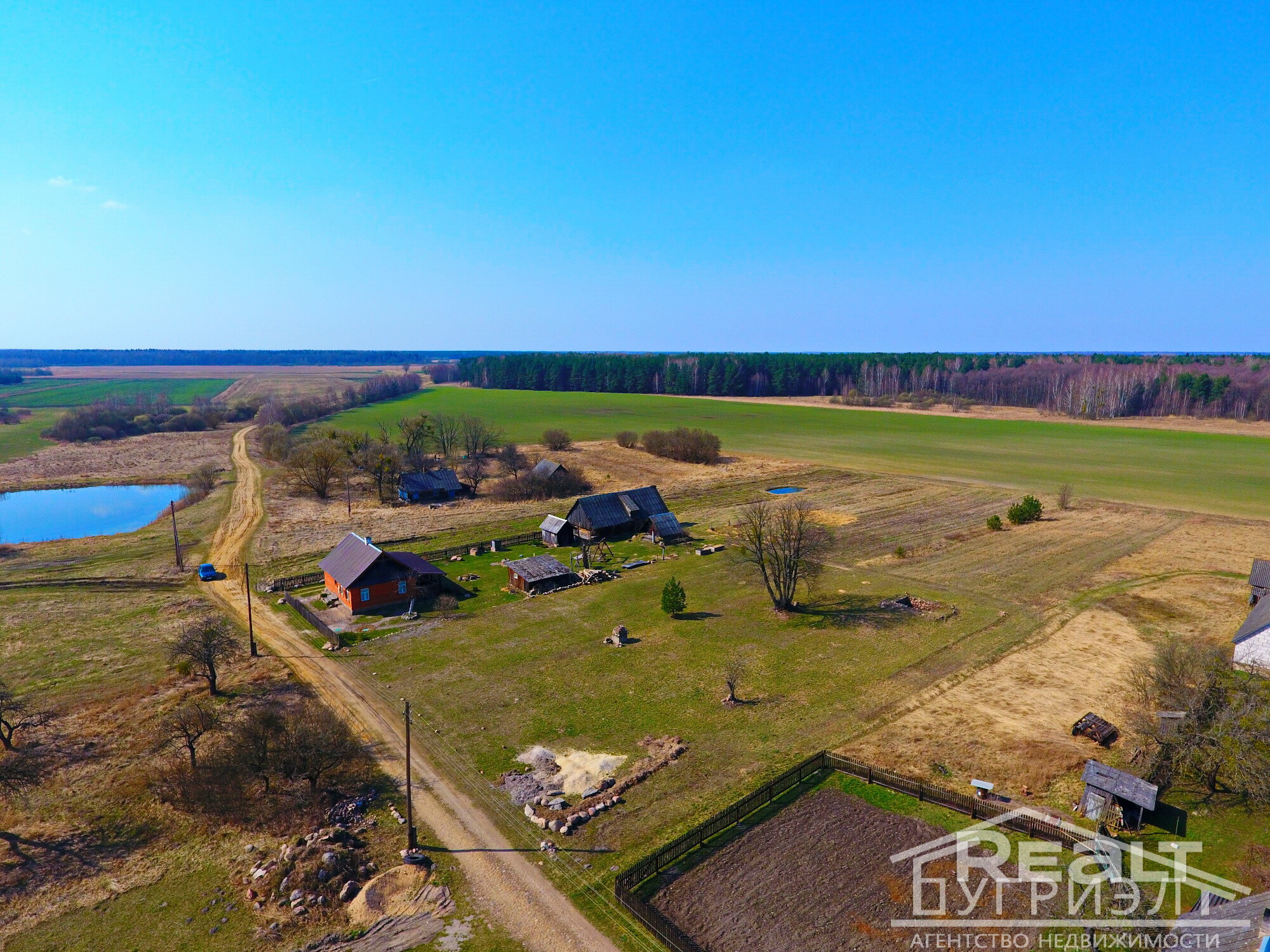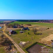 Усадьба в Беловежской Пуще. Прекрасный одноэтажный  с мансардой жилой дом. Стены выполнены из Пущанского леса, двухскатная крыша покрыта шифером, окна заменены на стеклопакеты. Оригинальная отделка в стиле деревенского дома. Коммуникации: электричество; отопление - печь, теплые электрические полы в ванной; водоснабжение - скважина глубиной 17 метров, установлен бойлер; канализация - септик с дренажной системой. Дополнительно имеется: крытая терраса, сараи, сеновал. Участок площадью 61,5 сотки правильной прямоугольной формы с благоустройством на территории. Участок частично огорожен сеткой рабицей. Подъезд к дому по грунтовой дороге, до асфальта 300 метров. Рядом лес и озеро. «Редкое предложение». Лот 180429