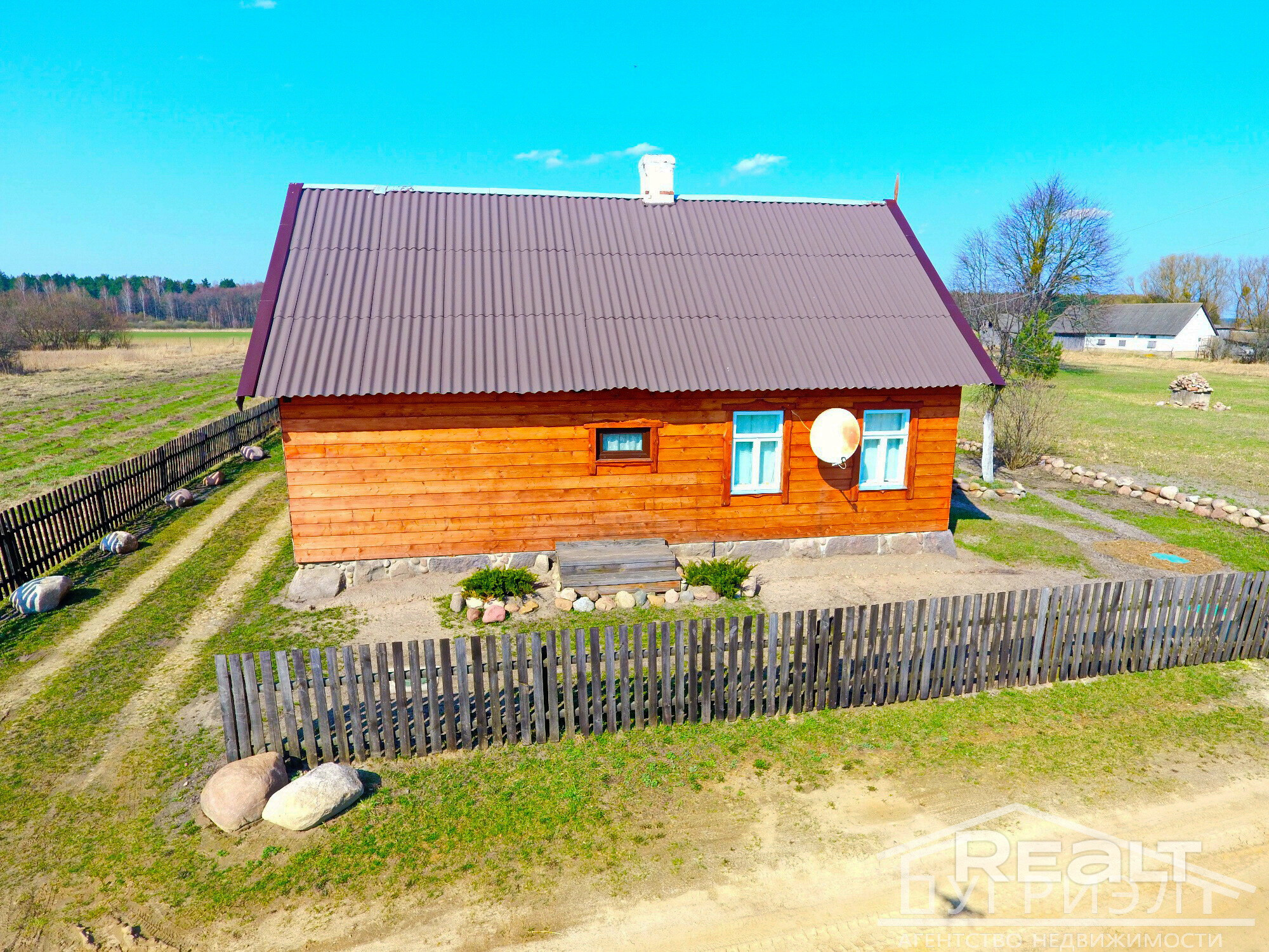 Усадьба в Беловежской Пуще. Прекрасный одноэтажный с мансардой жилой дом. Стены выполнены из Пущанского леса, двухскатная крыша покрыта шифером, окна заменены на стеклопакеты. Оригинальная отделка в стиле деревенского дома. Коммуникации: электричество; отопление - печь, теплые электрические полы в ванной; водоснабжение - скважина глубиной 17 метров, установлен бойлер; канализация - септик с дренажной системой.