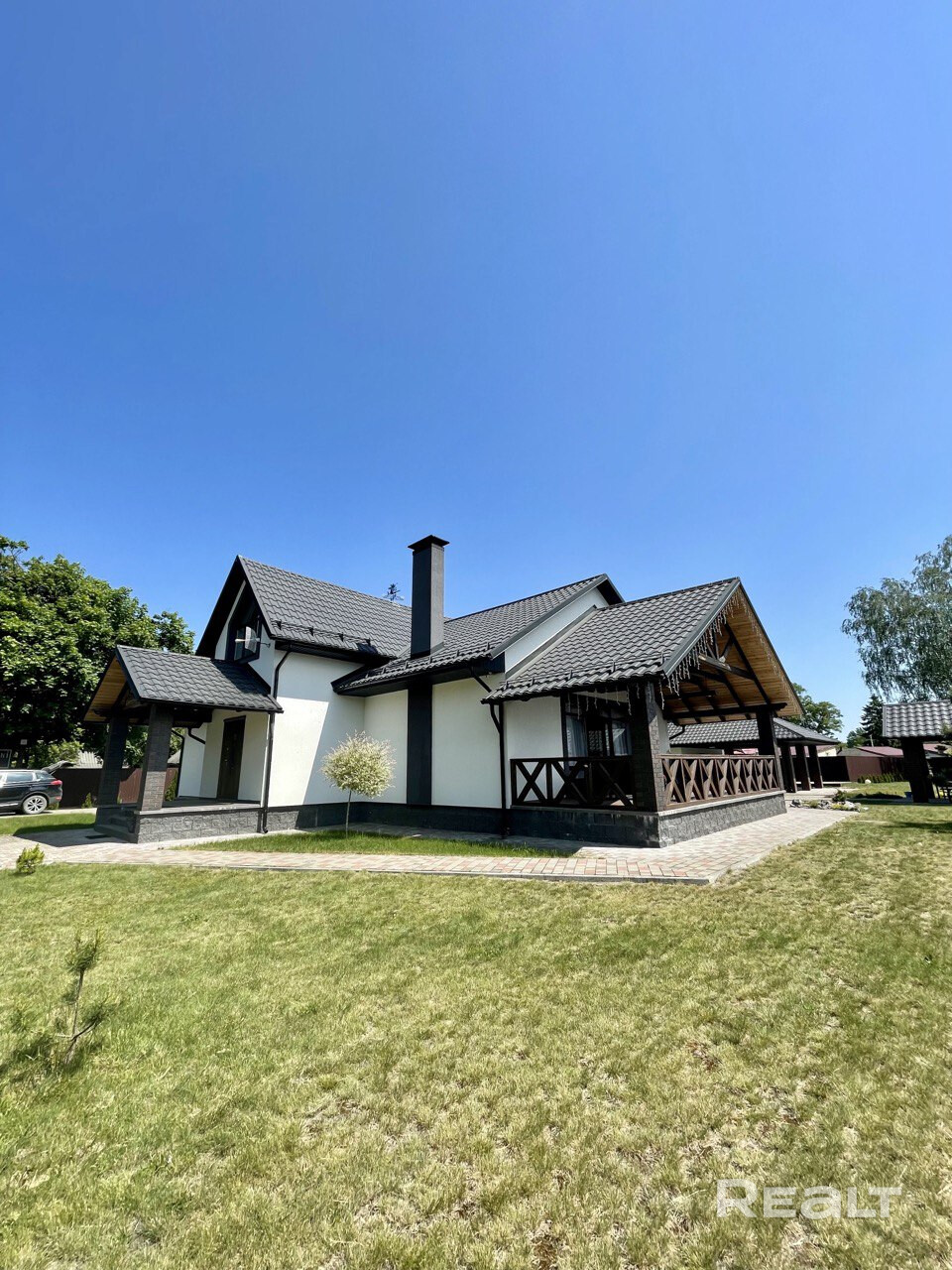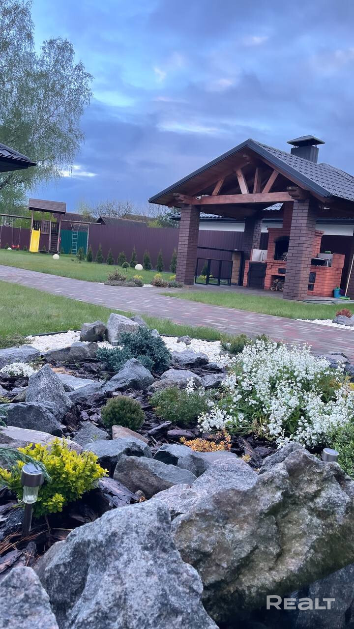 Жилой дом с ремонтом, оригинальная дубовая мебель, встроенная бытовая техника Bosch,терраса, русская баня на дровах с комнатой отдыха и камином, зона барбекю, хозпостройки, гараж, детская площадка, система видеонаблюдения по всей территории, система Ajax (отслеживание температуры, задымления в помещениях, отключение электроэнергии и т.д. спередачей на смартфон ), кондиционер