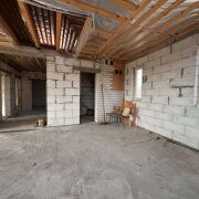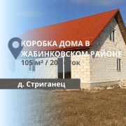 Коробка жилого дома мансардного типа в д. Стриганец. Площадь первого этажа 105 м кв. Первый этаж состоит из 3-х жилых комнат, просторной кухни-гостиной, раздельного санузла, котельной. На мансардном этаже можно разместить 3 жилые комнаты. Проектом предусмотрена терраса с выходом из гостиной во внутренний дворик. Стены из газосиликатых блоков, кровля - металлочерепица, установлены окна ПВХ, по всему первому этажу залита черновая стяжка. Коммуникации: электричество на участке, газ проходит по улице, водоснабжение - пробита скважина, канализация - местная. Расстояние до Бреста - 18 км, подъездные пути асфальтированные. Участок прямоугольной формы 0,2 га.