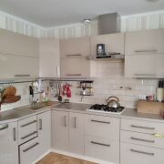 Дом готов к проживанию, полы выполнены из паркета (в гостиной и спальне), ламината и плитки. Ремонт выполнен в спокойных цветовых решениях с использованием кованных декоративных элементов, что придает интерьеру особый шарм. Коммуникации включают газовое отопление (котел) и твердотопливный котел, водоснабжение обеспечивается скважиной, а канализация – местная.