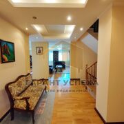 Во всём доме сделан качественный ремонт. В помещениях уложены полы из паркетной доски и керамической плитки, многоуровневые потолки из гипсокартона имеют декоративную подсветку и точечные светильники, а в кухне, прихожей и санузлах разведена система тёплых полов. Комфортный микроклимат в доме поддерживается при помощи двух кондиционеров. С правой стороны в доме имеется автомобильный гараж с автоматическими роллетными воротами. На цокольном этаже расположено помещение топочной, а также настоящий спортзал с теннисным столом и тренажёрами.