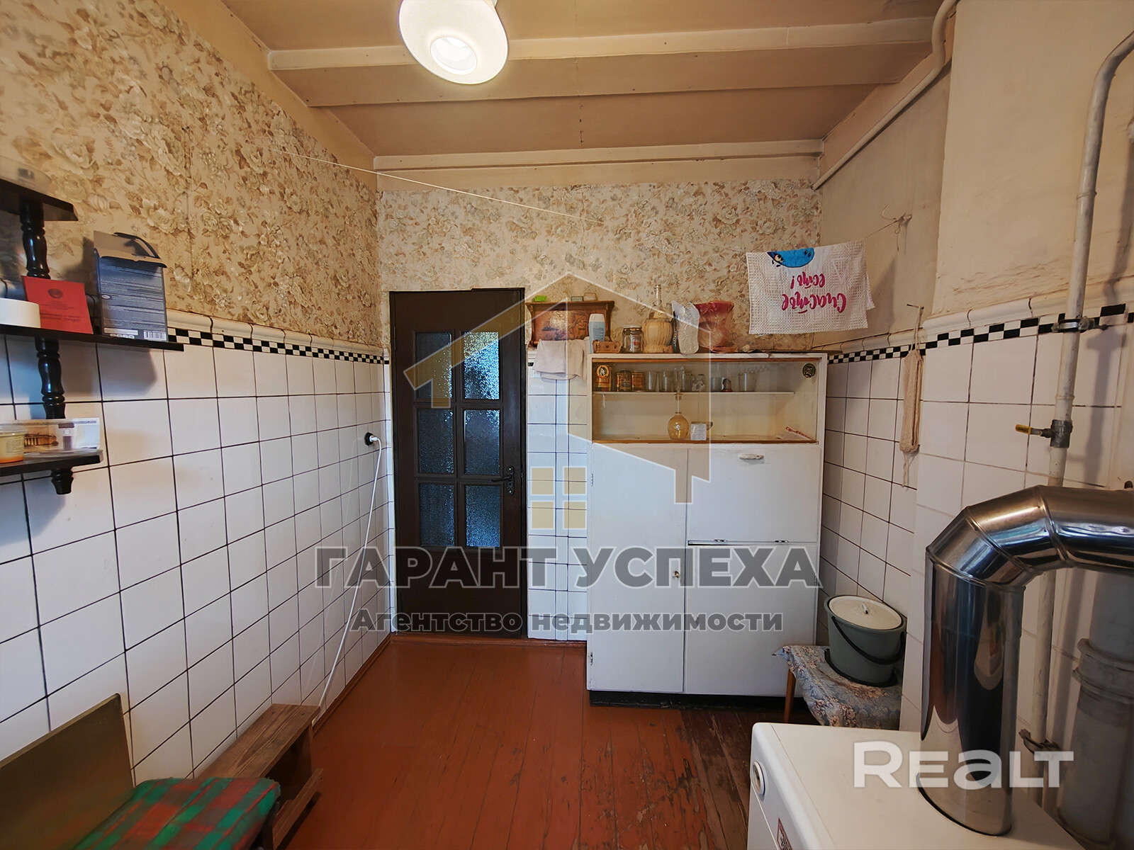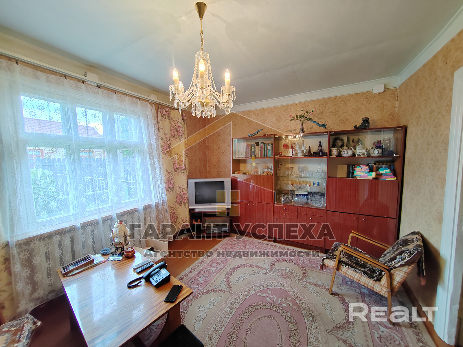 Общая площадь квартиры составляет 79,5 кв.м, жилая – 48,3 кв.м. Помимо описанных комнат в квартире имеются кухня площадью 7,1 кв.м, коридор и небольшая веранда. Также порадуют покупателей наличие двух подвалов (один из которых расположен в сарае). Жилой ремонт позволит Вам въехать сюда сразу после покупки. На полах уложена крепкая деревянная доска, стены оклеены разноплановыми обоями, а потолок из ДВП окрашен в светлые тона.