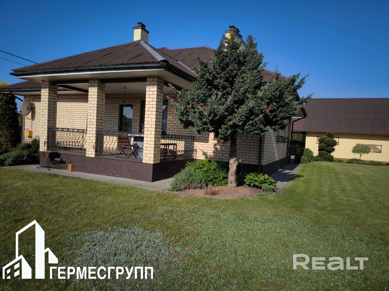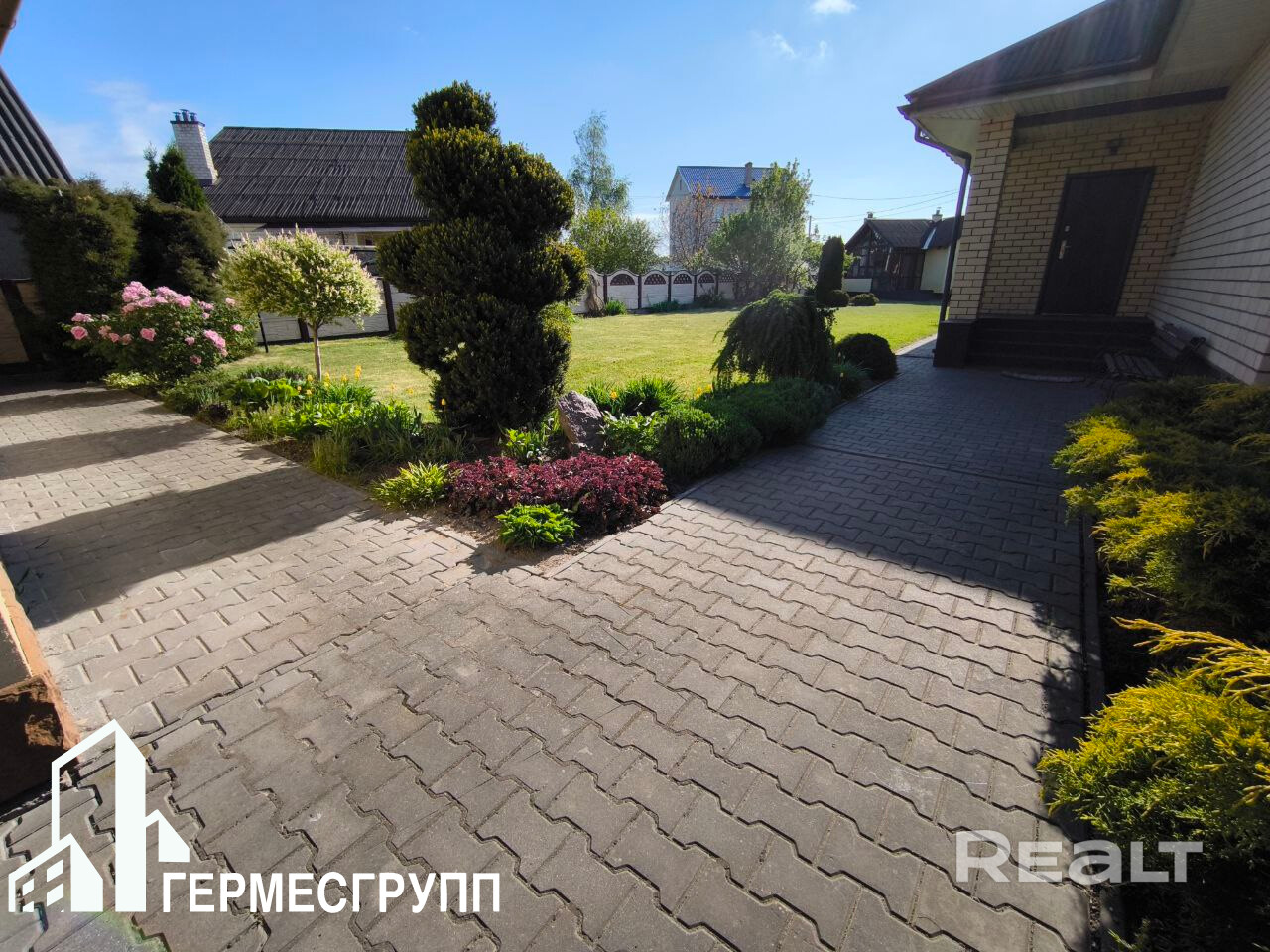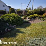 Участок площадью 14.47 соток огорожен со всех сторон и оформлен в стиле ландшафтного дизайна с множеством декоративных растений и прудиком. По периметру вымощен тротуарной плиткой, что добавляет эстетики и удобства.