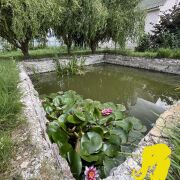 Участок - 0,1359 га. Ровный, правильной прямоугольной формы. Огорожен со всех сторон. На участке высажены декоративные растения, выкопан пруд.