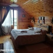 На территории три дома. Участок под каждый дом - 0.25 га. Общая площадь участков -0.75 га. Постройки выполнены из экологически чистых материалов; мебель ручной работы изготовлена местными мастерами из качественных дубовых пород.