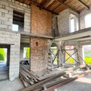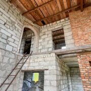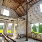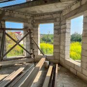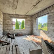 Общая площадь – 116,5, жилая – 77,2, кухня – 15,95 квадратных метров. Фундамент – ленточный монолитный, армированный. Стены – блок силикатный. Перекрытия – монолитные плиты. Крыша покрыта мягкой битумной черепицей.