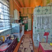 Одноэтажный дом из красного керамического кирпича. Оштукатурен и покрашен. Кровля: шифер. Фундамент: ленточный монолитный; материал - бетон. Коммуникации: отопление - газовый котел, газ - централизованный (в доме), водоснабжение - скважина, электричество - централизованное, канализация - автономная. В доме четыре жилые комнаты правильной квадратной формы, потолки натяжные, окна пластиковые стеклопакеты. Высота потолков 2.85 м. Санузел совмещенный плитка нового образца. Стены оклеены обоями.