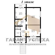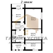 Общая площадь здания составляет 393,9 кв.м, жилая площадь составляет 165 кв.м. В доме жилые комнаты равномерно размещены на разных уровнях, на первом этаже также имеются кухня, прихожая, раздельный санузел, холл с лестницей, выход на цокольный этаж с гаражом, топочной и вспомогательными помещениями. Ещё один раздельный санузел расположен на 2 этаже, а из холла есть выход на застеклённую веранду.