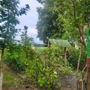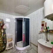 Коммуникации включают печное отопление, привозной газовый баллон, водоснабжение из скважины с гидрофором, централизованное электричество и автономную канализацию. На территории также имеются хозяйственные постройки: летняя кухня, баня, различные хозпостройки и беседка, а также колодец. Участок площадью 0,2500 га озеленен и благоустроен, что создает комфортные условия для жизни и отдыха.