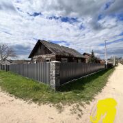 Участок площадью 0,0609 га, огорожен со всех сторон забором из металлопрофиля с декоративными столбами. Ворота распашные, калитка.