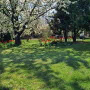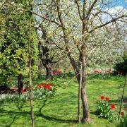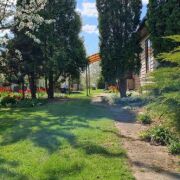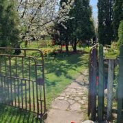 От городской черты 1,5 км. Есть летняя кухня на территории и сарай. На участке есть более 20 видов плодовых деревьев, малина, смородина, шелковица. Забор сделан из живой изгороди. Нет соседей, рядом поле. Есть огород, малина, смородина, клубника. Высажено много цветов, был посеян газон. Внутри много старых вещей, печь, с плитой, есть кухня и 2 комнаты, одна большая и одна отдана под хоз помещение, 2 подвала. Окна пластиковые, проведён вай фай. Недалеко лес, речка, деревня .