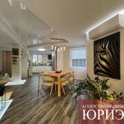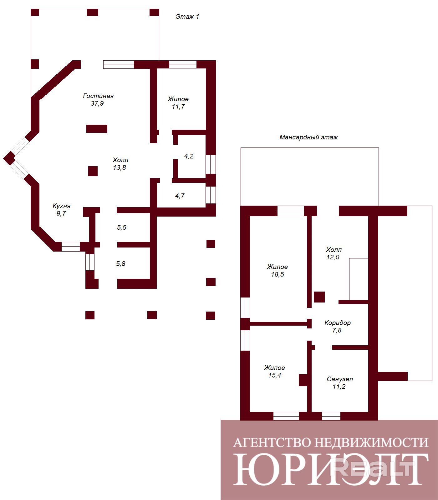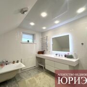 - Дом 2015 года постройки общей площадью 175,9 м2, представляет собой просторный 1-й этаж с навесом и террасой, где также расположились просторная гостиная, кухня гостевая спальня или кабинет, санузел и котельная, и мансардный этаж с двумя спальнями и санузлом.