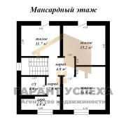 Общая площадь – 140/130,6 кв. м, жилая – 79 кв. м, кухня 11,7 рядом с просторной гостиной – 35,2 кв. м. На мансарде ри изолированные жилые комнаты 11,7/15,2/16,9 кв. м. с высотой потолка 2,75 м. Большая терраса 32,6 кв. м.