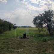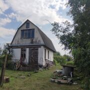 Вторая постройка из газо-силиткатных блоков. Зарегистрирована как летняя кухня. Полноценный мансардный этаж, две комнаты на первом. Для завершения строительных работ оставлено много деревянной доски, имеется лестница, кирпич, сваренный металлический чан для погреба, ёмкость для летнего душа.