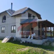 По проекту в доме 3 комнаты (есть возможность обустройства 4-й комнаты), кухня-гостиная, 2 санузла, кладовая, гардеробная, котельная. Подготовлена бетонная площадка для террасы с навесом из гостиной. На участке имеется электричество, скважина в доме, по улице газ (оплачен). В доме установлен чугунный камин.