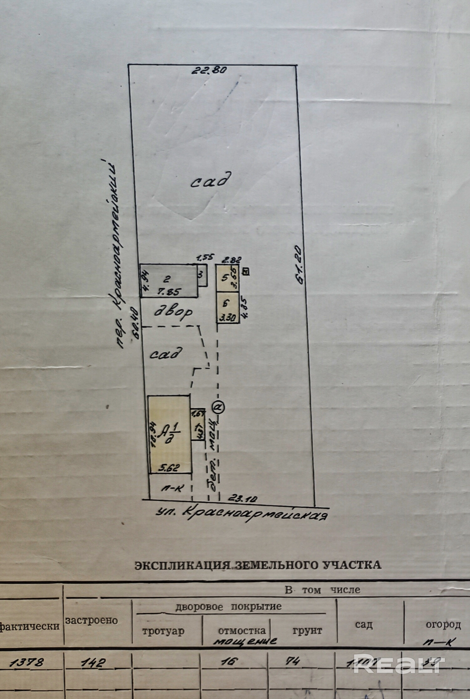 - Площадь участка