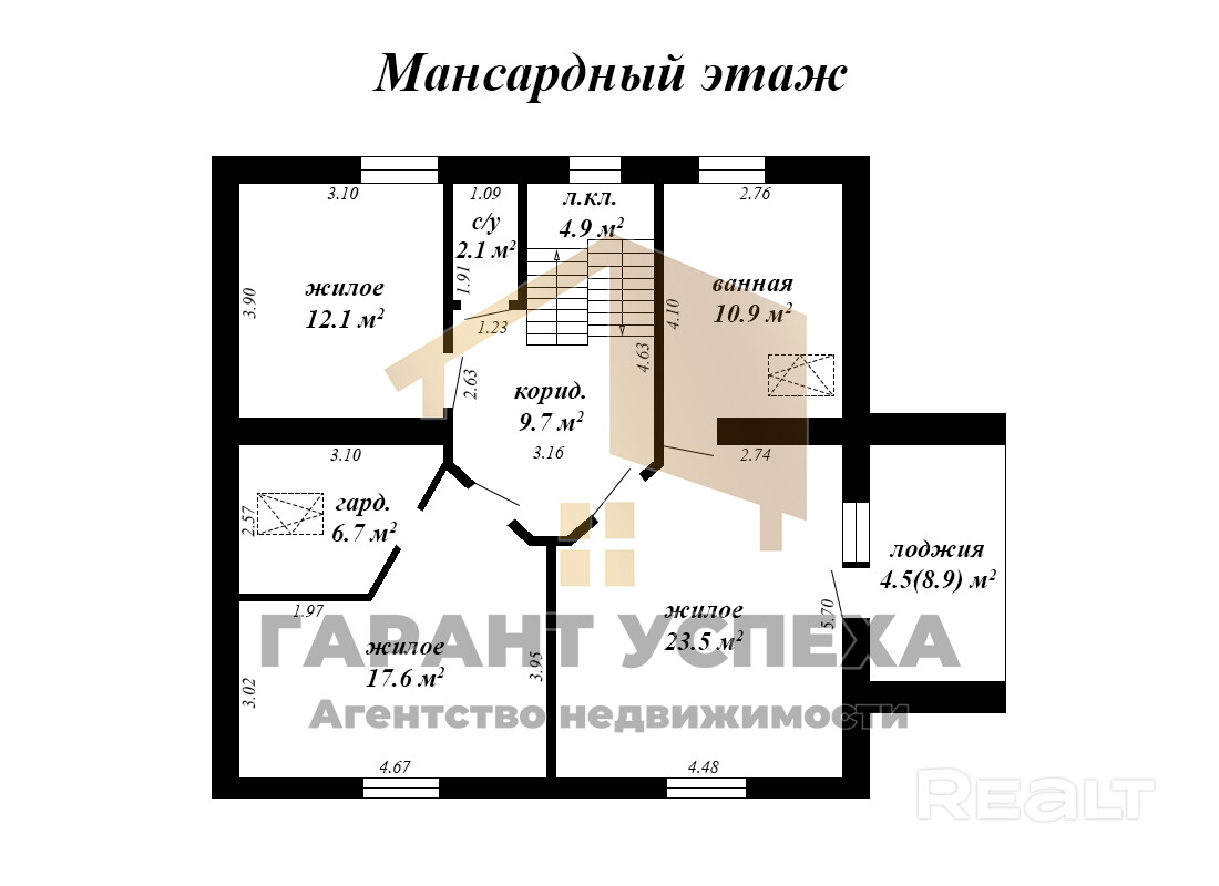 В продаже мансардный дом 2003 года постройки в северо-восточной части города Бреста.
