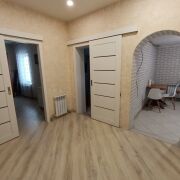 Продаётся пол дома по улице Ленинградская. Хорошее расположение, 2 входа на участок: с улицы Первомайская и с улицы Ленинградская. Асфальтированный подъезд. Калитка и ворота для заезда авто из металлопрофиля, забор железобетонный + деревянный. Общий участок 12 соток, продаваемый 6 соток. Дом из бруса, обшит сайдингом, крыша - шифер, окна - ПВХ. Был полный демонтаж, до бруса. Канализация центральная, водоснабжение центральное, для отопления установлен электрокотел, батареи в каждой комнате, есть современный камин, можно использовать так же для отопления, газ идёт по улице. Санузел совмещённый, выложен плиткой, оборудован теплый пол, установлен бойлер. На кухне на полу плитка, на стенах декоративный кирпич, в комнатах на полу ламинат, на стенах декоративная штукатурка и обои, потолки натяжные. Межкомнатные двери качественные, раздвижные, с доводчиками.