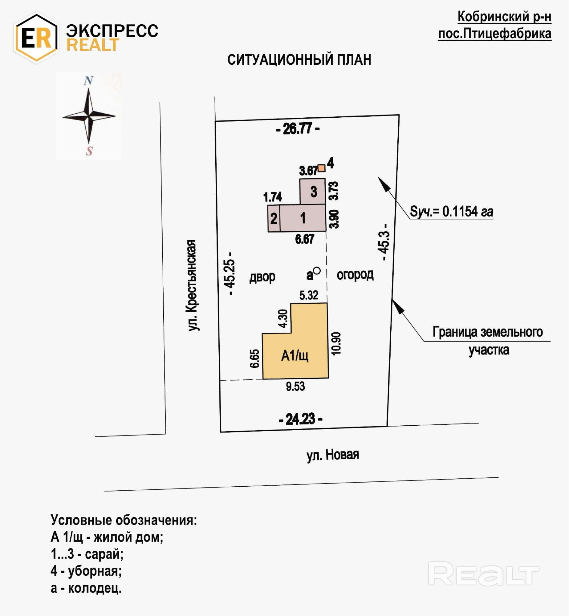 Предлагается к продаже одноквартирный жилой дом в пригороде г. Кобрина (пос. Птицефабрика). Дом1980 года постройки, одноуровневый, высота потолков - 2,55 м. В доме 4 жилые комнаты (3 изолированные), коридор, ванная и кухня. Наружные стены – щитовые, отделка фасада - силикатный кирпич; перекрытие - деревянное; кровля - шифер; фундамент - ленточный из монолитного бетона; окна – деревянные и ПВХ; двери - деревянные; полы - дощатые. Инженерные коммуникации: отопление - на газу от котла и печное; газ - централизованный; водоснабжение – центральный водопровод и колодец; электричество и канализация - центральные; с/у на улице. Угловой земельный участок (в ПНВ) площадью 0.1154 га прямоугольной формы в плане, огорожен по периметру, с удобными подъездными путями. На участке помимо дома расположены три сблокированных сарая, колодец и уборная. Тихий и уютный пригород с малоэтажной частной застройкой. В посёлке находятся ясли-сад, продуктовый магазин и остановки общественного транспорта. Удобное транспортное сообщение с городом. Продажа с мебелью. Один собственник. Реальному покупателю – хороший торг при осмотре! ООО «Экспресснедвижимость-риэлт», УНП 193505113, лицензия №02240/409 от 05.03.2021 г., договор на оказание риэлтерских услуг № 282/6 от 25.11.2025 г.
