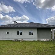 Стены блок г/с 250мм, утеплены пенополистиролом 50мм, оштукатурены. Фасад готов под окраску.