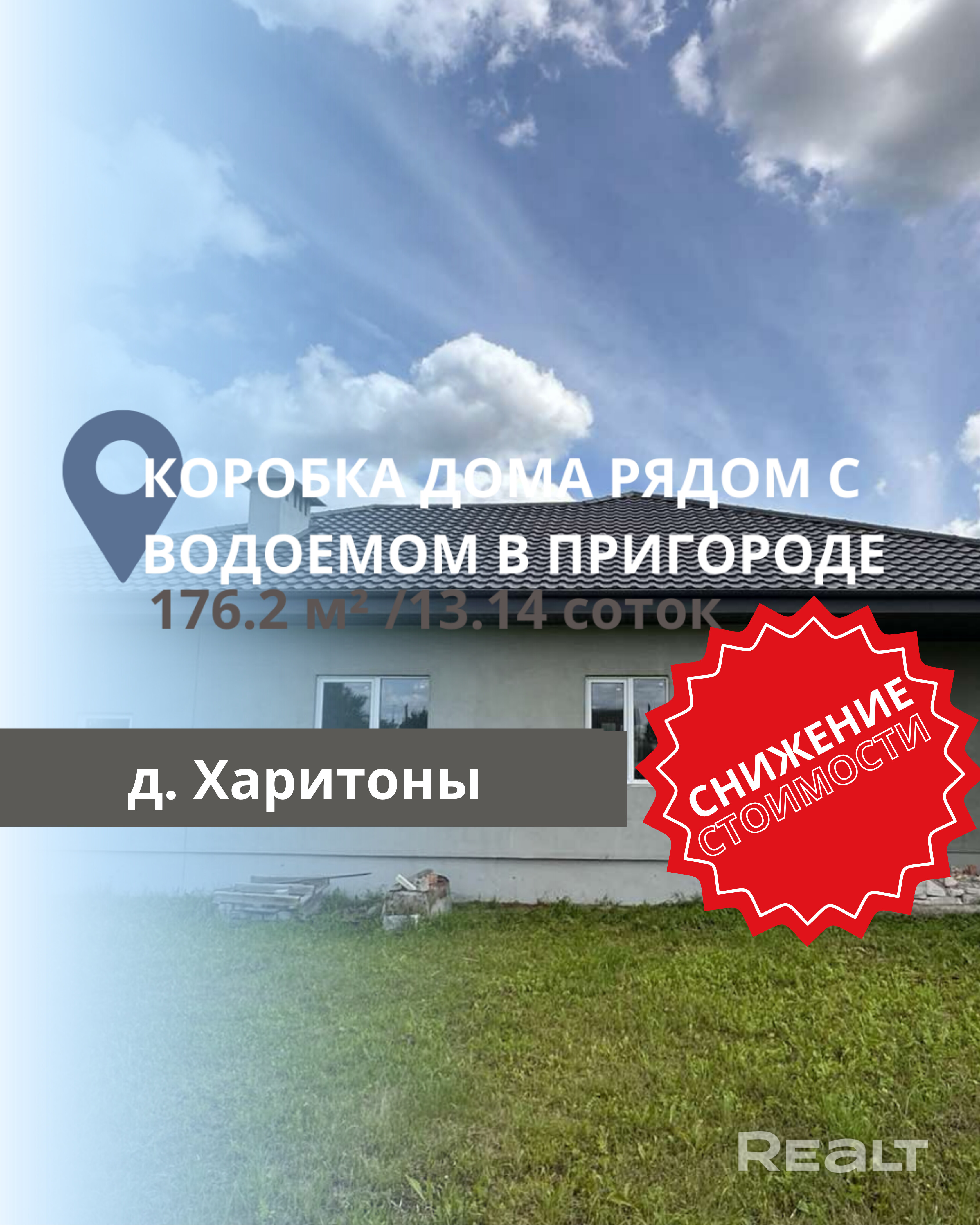 Продаётся коробка дома (незавершённое законсервированное капитальное строение) в пригороде Бреста, д.Харитоны, Чернинскиий с/с Общая площадь 176,4 м2, в т.ч гараж 26м2.