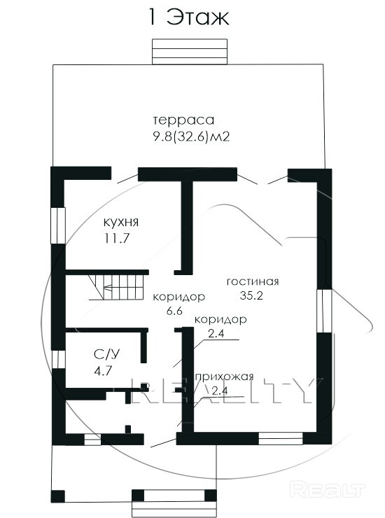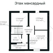 Практичная и простая планировка дома: на первом этаже большая гостиная 35.2 м2 с выходом на террасу, изолированная кухня 11.7 м2, совмещённый санузел и лестница на мансарду, в приватную зону спален. Функционально оборудованный выход из дома во внутренний двор к планируемой зоне барбекю, хозблоку или в гараж.