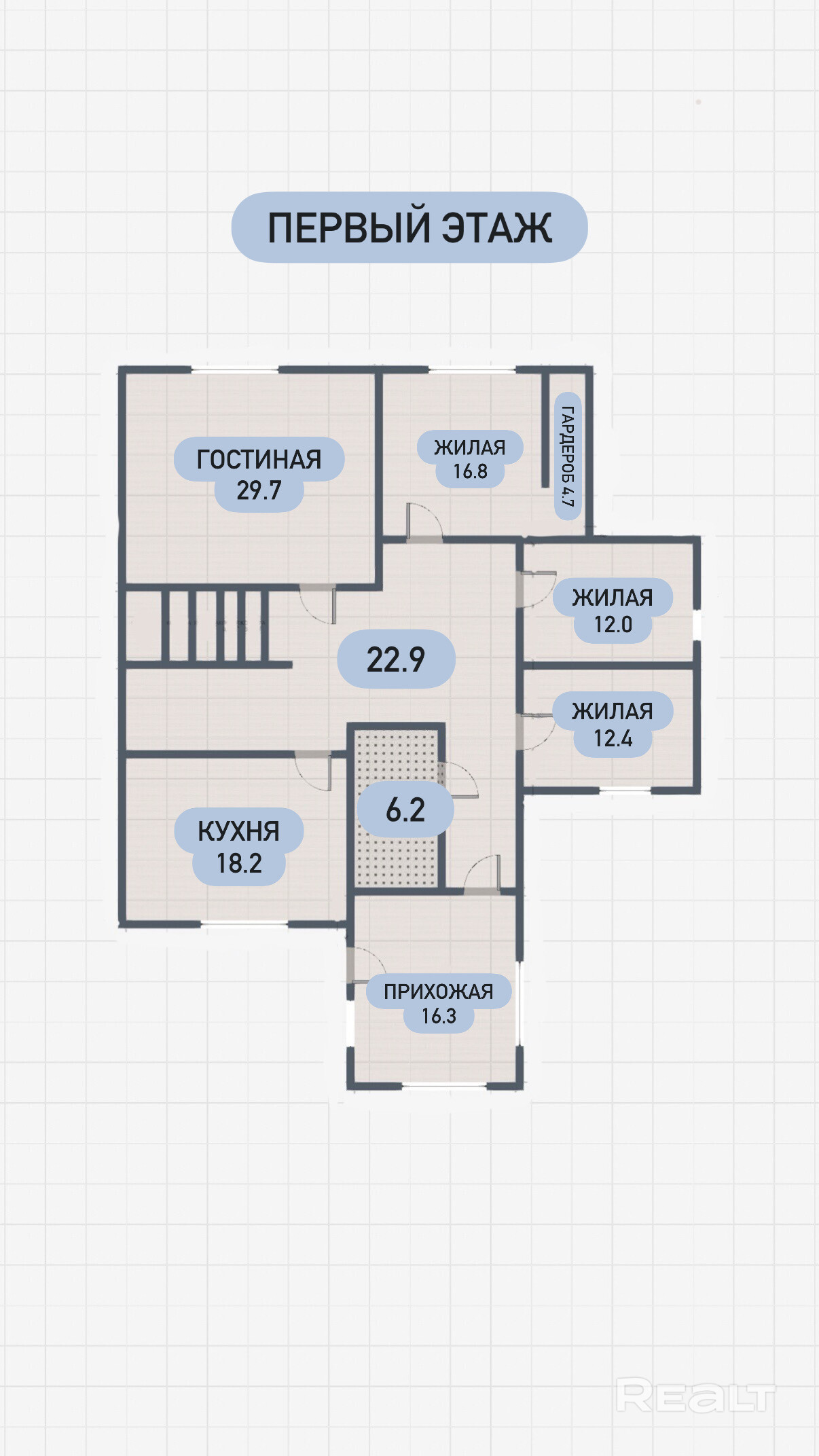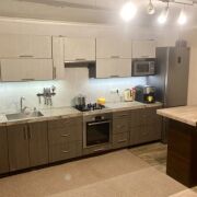 К дому прилагается гараж площадью 37 кв. м, в котором есть вода и отдельная ванная комната с санузлом. Подвальные помещения высокие и удобные, с разведенным отоплением, что позволяет их использовать по вашему усмотрению. Первый этаж полностью готов к проживанию, а на втором этаже выполнена черновая отделка, что предоставляет прекрасную возможность реализовать свои дизайнерские идеи.