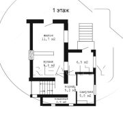 Общая площадь квартиры СНБ 122,0 кв.м, площадь жилых помещений -115,5 кв.м, жилая площадь 45,0 кв.м. Кухня 9.3 кв.м. Уютная и функциональная планировка: на первом этаже размещены кухня, гостиная с обеденной зоной и выходом на террасу, ванна и прихожая; на мансарде – три спальни и санузел.